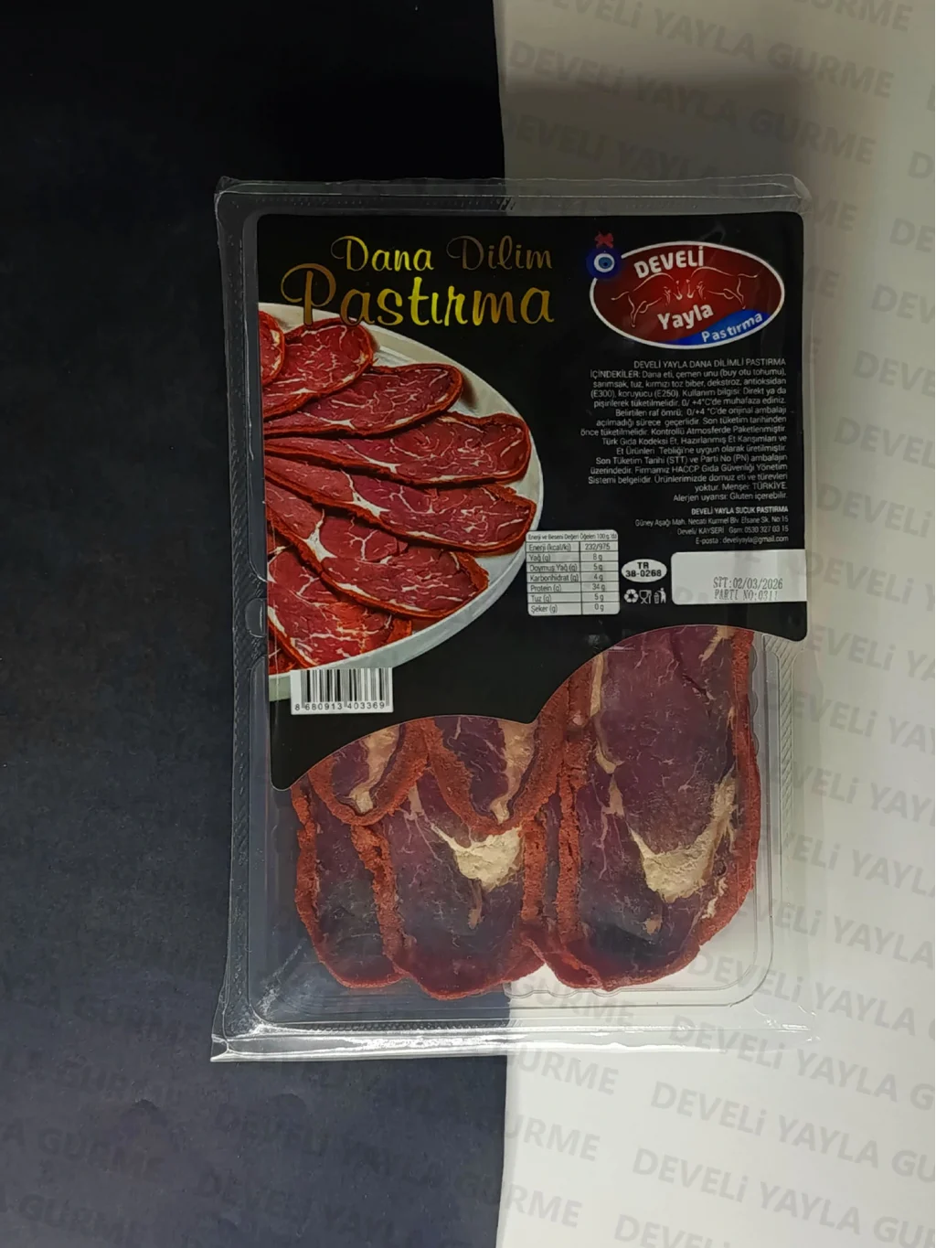 Özenle seçilen dana etlerinden, geleneksel yöntemlerle hazırlanan pastırma; yoğun aroması ve ince dilimiyle hem soğuk sunumlarda hem de ana yemeklerde öne çıkar.