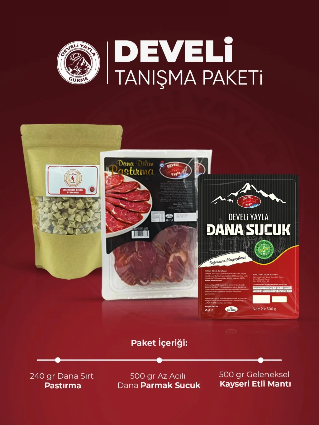 Develi Tanışma Paketi, Kayseri mutfağının en sevilen üç klasiğini bir araya getirerek, tek alışverişte zengin bir sofra kurmak isteyenler için hazırlandı. İlk kez denemek isteyenler için pratik ve avantajlı bir başlangıç sunar.