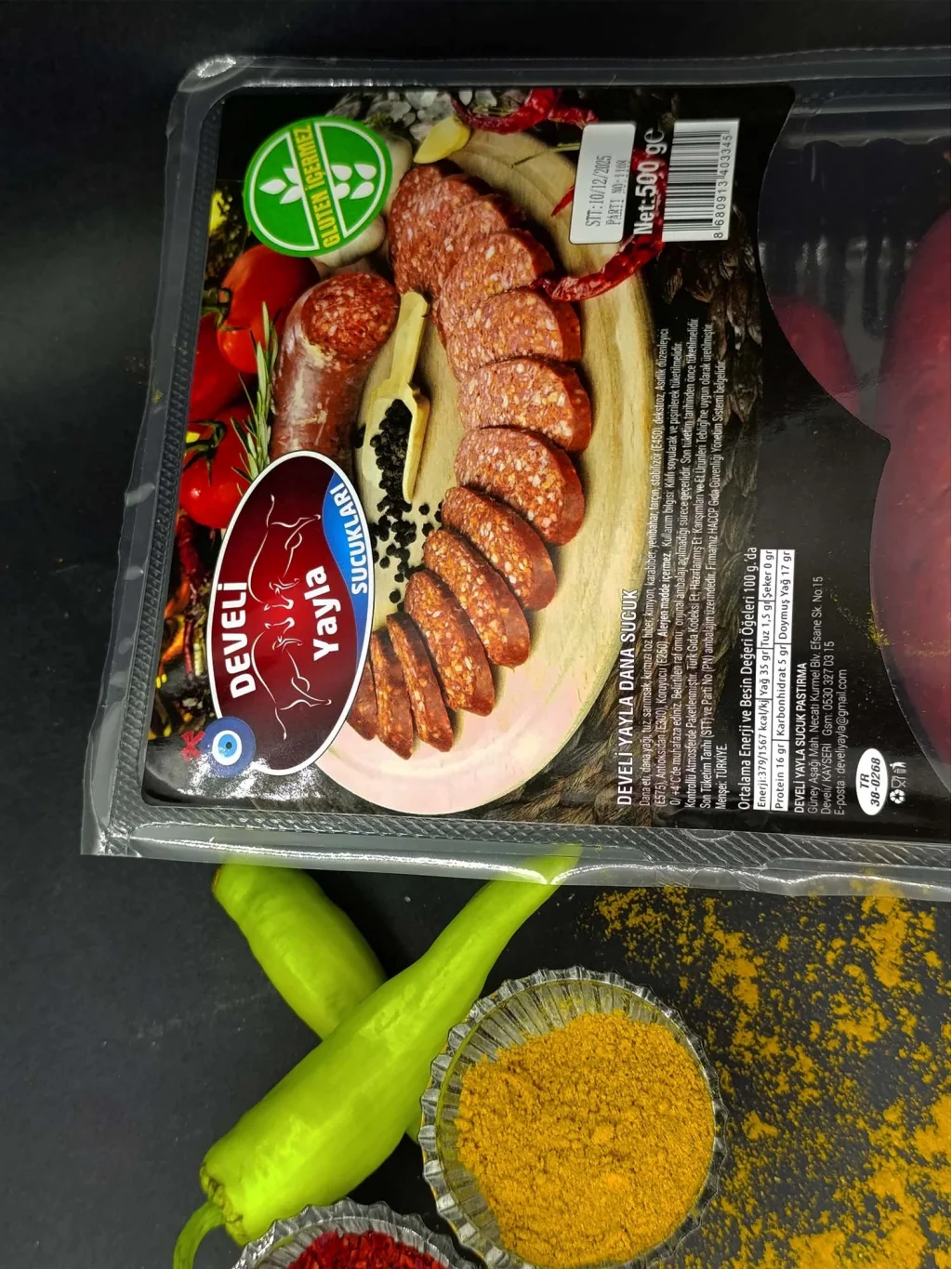 Glutensiz beslenme gereksinimlerine uygun olarak üretilen Develi Yayla Glutensiz Özel Dana Parmak Sucuk,