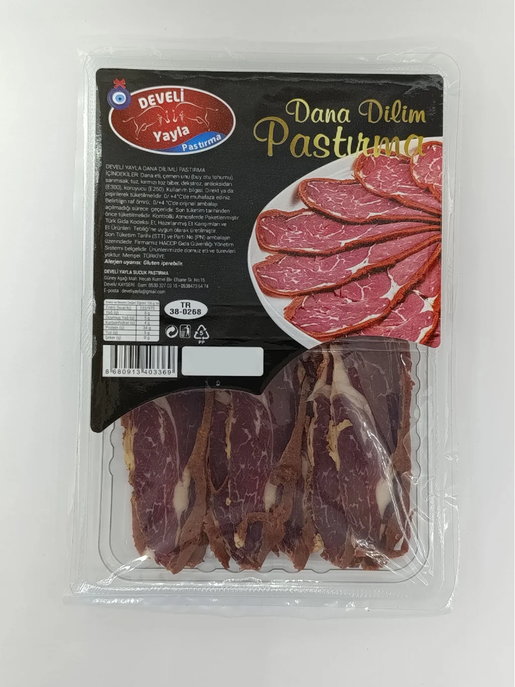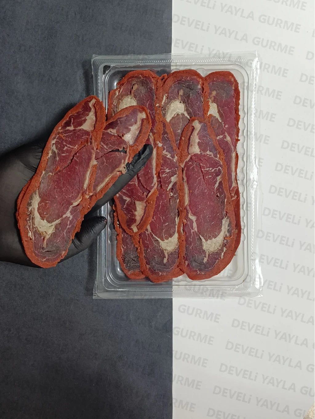 Develi Yayla pastırması, özenle seçilen dana etlerinin geleneksel yöntemlerle hazırlanmasıyla üretilir. Yoğun aroması ve ince dilimiyle kahvaltılarda, soğuk sunumlarda ve özel sofralarda tercih edilir.