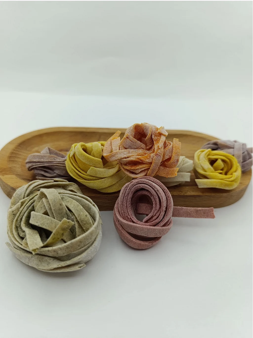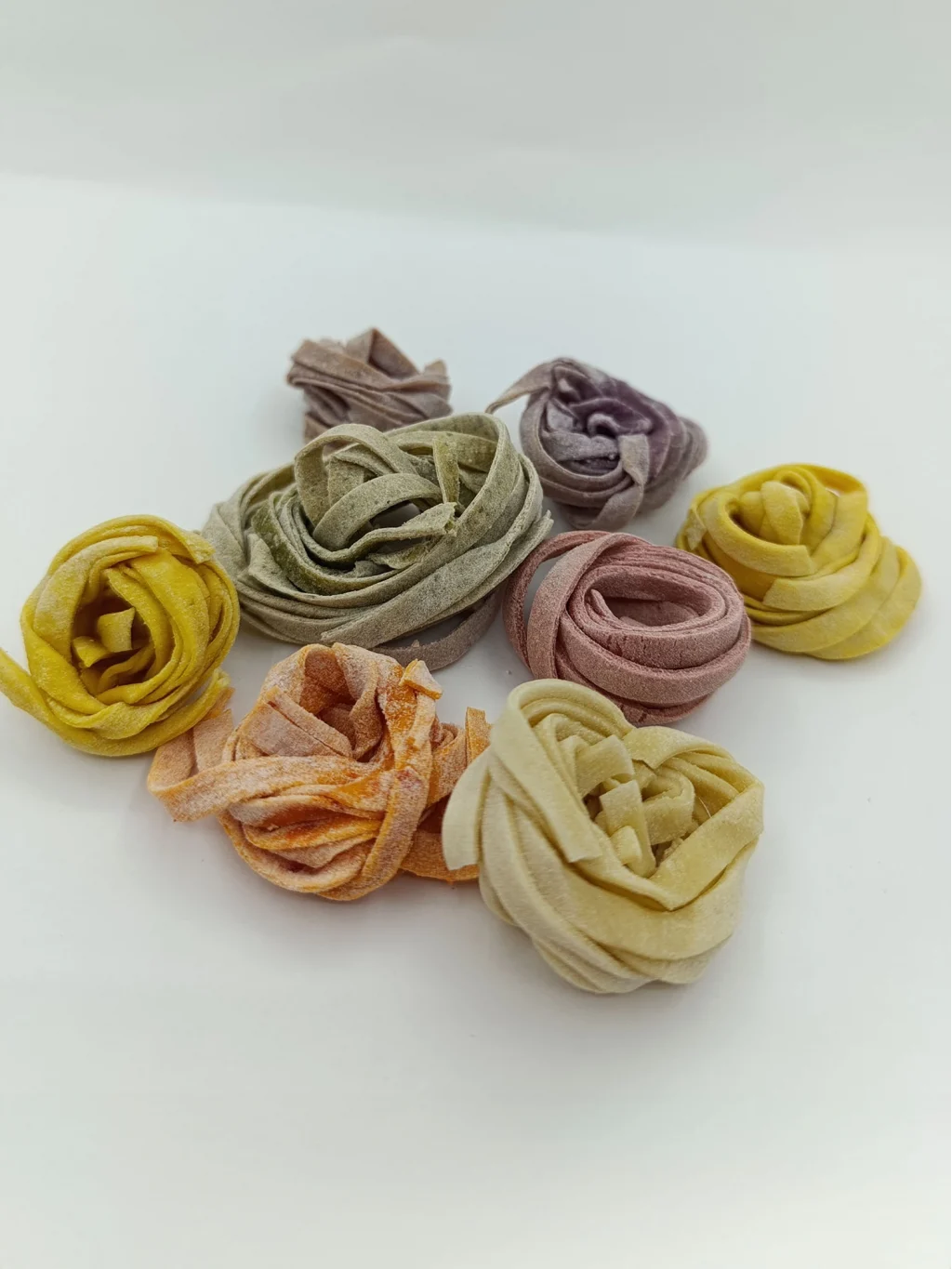 Doğal malzemelerle lezzet ve renk kazandırılmış özel bir makarnadır. Bu ürün, sofralarınıza sadece makarna değil, aynı zamanda doğanın en taze ve canlı renklerini de getirir. İçeriğinde bulunan havuç, domates, pancar ve ıspanak, hem göz alıcı renkler hem de zengin aromalar sunar. Tüm sebzeler özenle seçilerek makarnanın içine işlenir ve böylece her bir dilim, eşsiz bir lezzet deneyimi sunar.