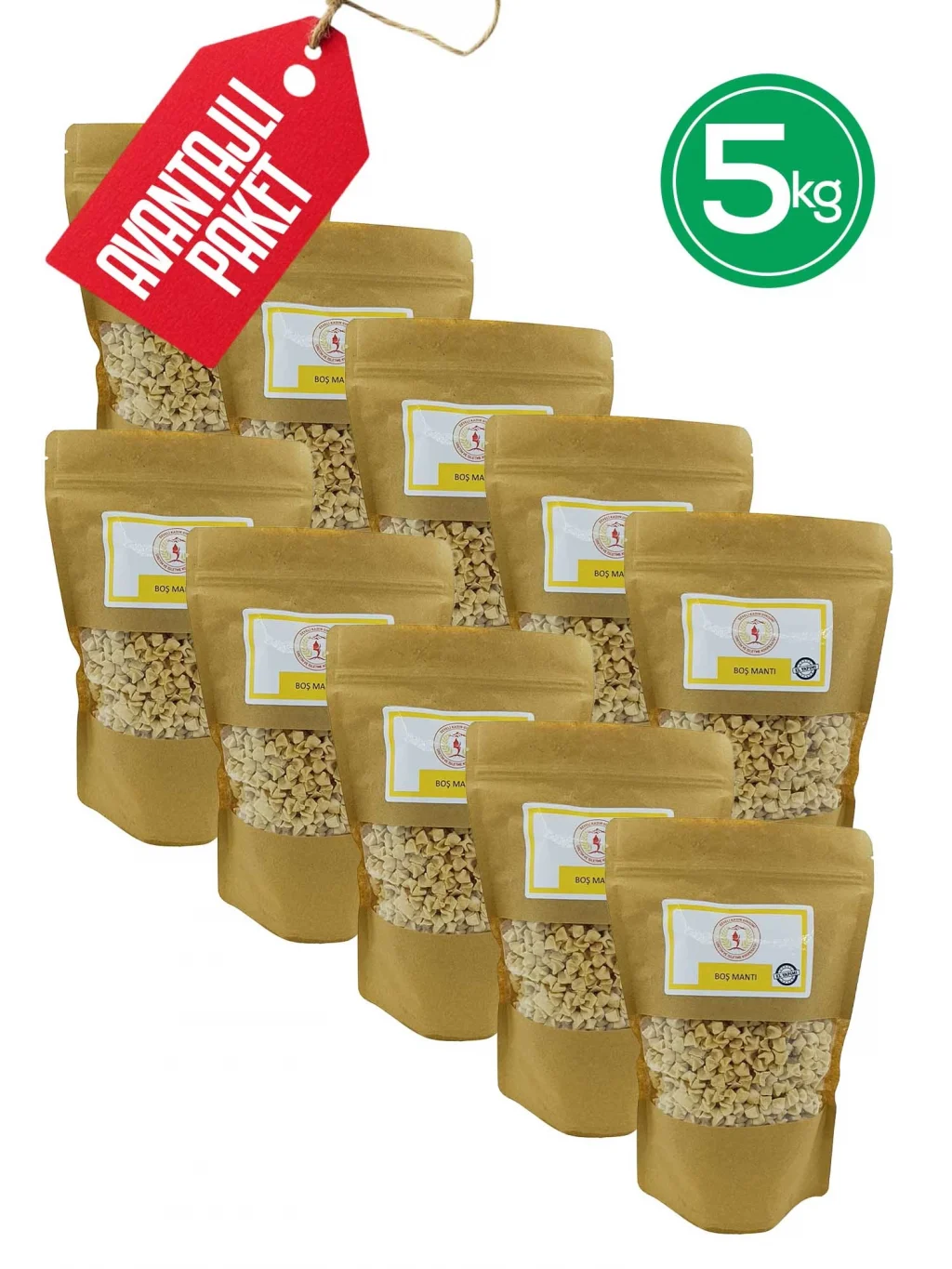 Kayseri mantısının bu etsiz versiyonu, vejetaryen bireyler için hem doyurucu hem de ekonomik bir seçenektir. 5 kg'lik ambalaj, aile ve davet sofralarınıza özel olarak tasarlanmıştır.
